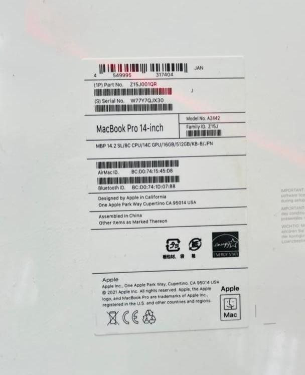 MacBook Pro M1 Pro Année 2022 Ram 16gb Ssd 512gb Écran 14“ Face ID ✅