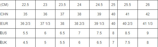 les pointures disponibles pour chaque couleur sont: 36, 37, 38, 39, 40, 41, 42 et 43